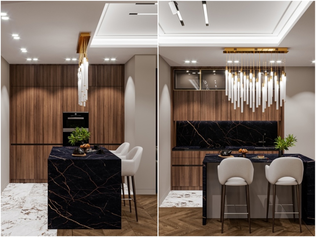 Помещения, выполненные в стиле арт-деко, смотрятся богато и эклектично. Простор и роскошь в каждой детали. Самый подходящий материал как для отделки стен, так и для напольного покрытия - натуральный камень. В нашем случае это мрамор. Для создания уюта мы установили камин, мягкие кресла и диван.